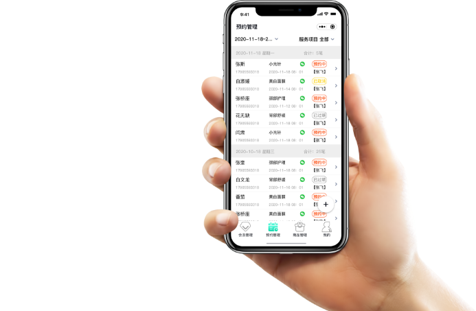 公众号随时在线预约,合理分配美容师智能管理排班需求,提高美容师服务效率后台查看会员预约信息,简化预约确认操作
